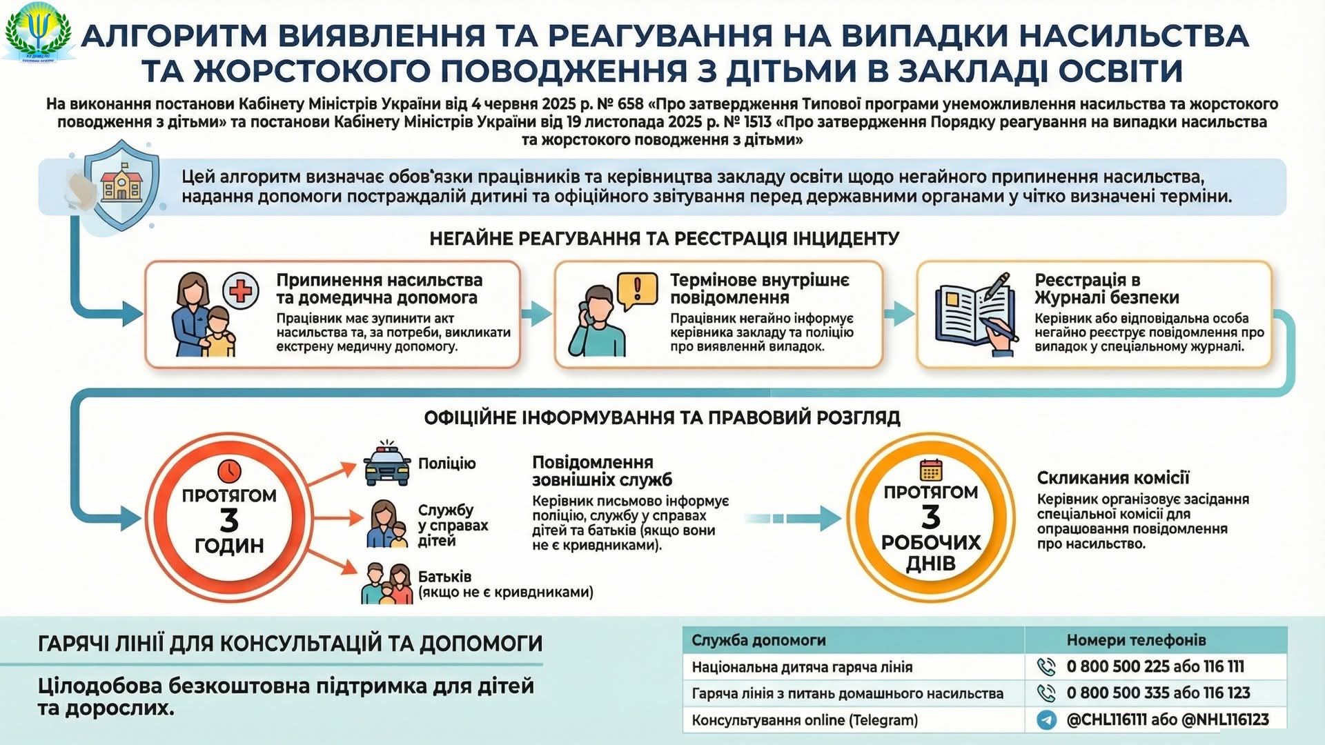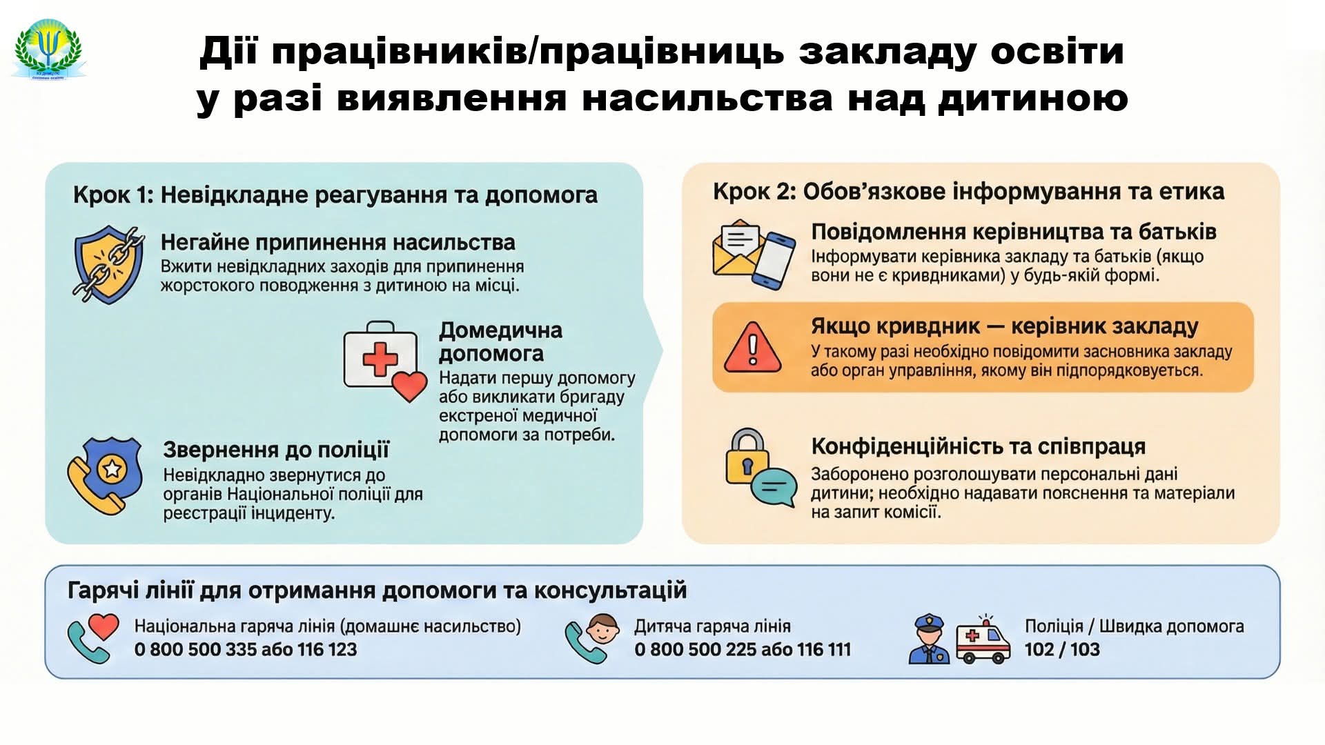 • Національна “гаряча лінія” з питань захисту прав дитини – 116 111