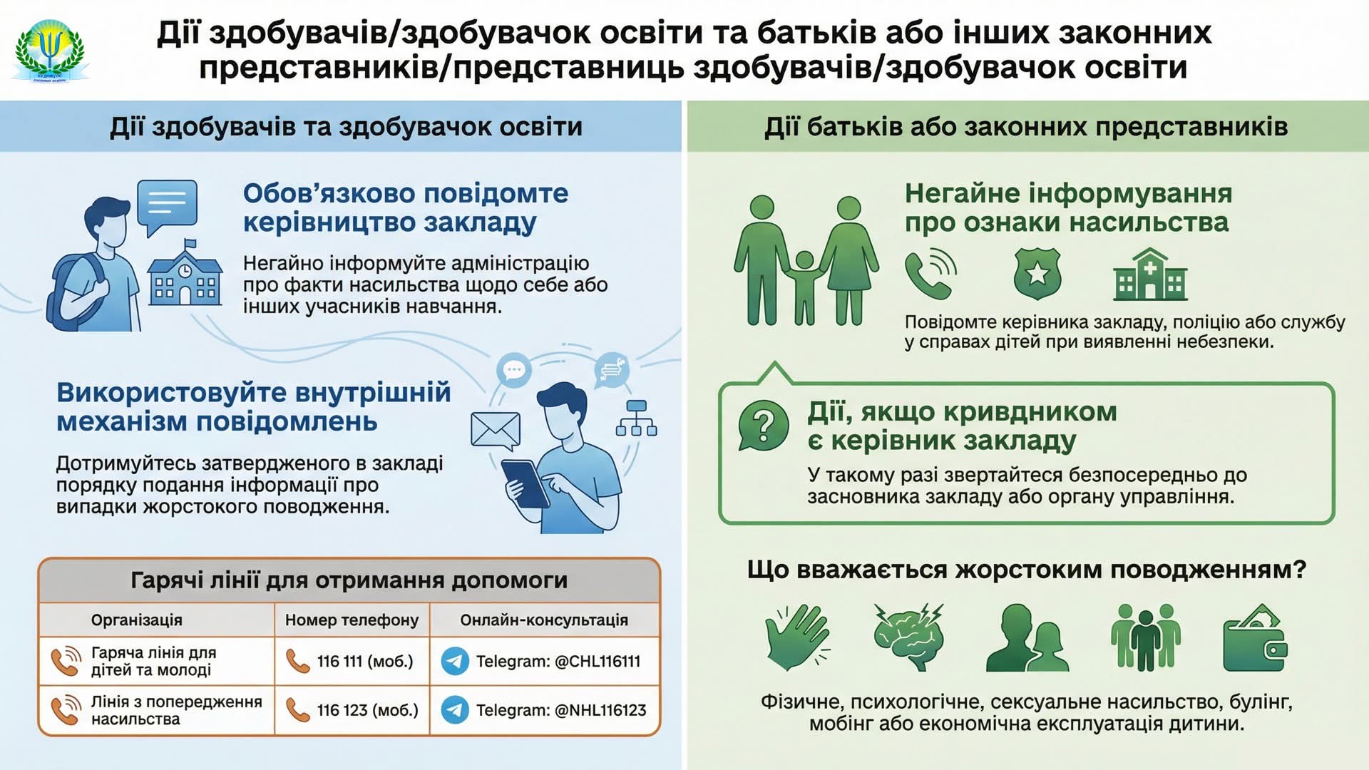 • “Гаряча лінія” щодо булінгу – 116 000