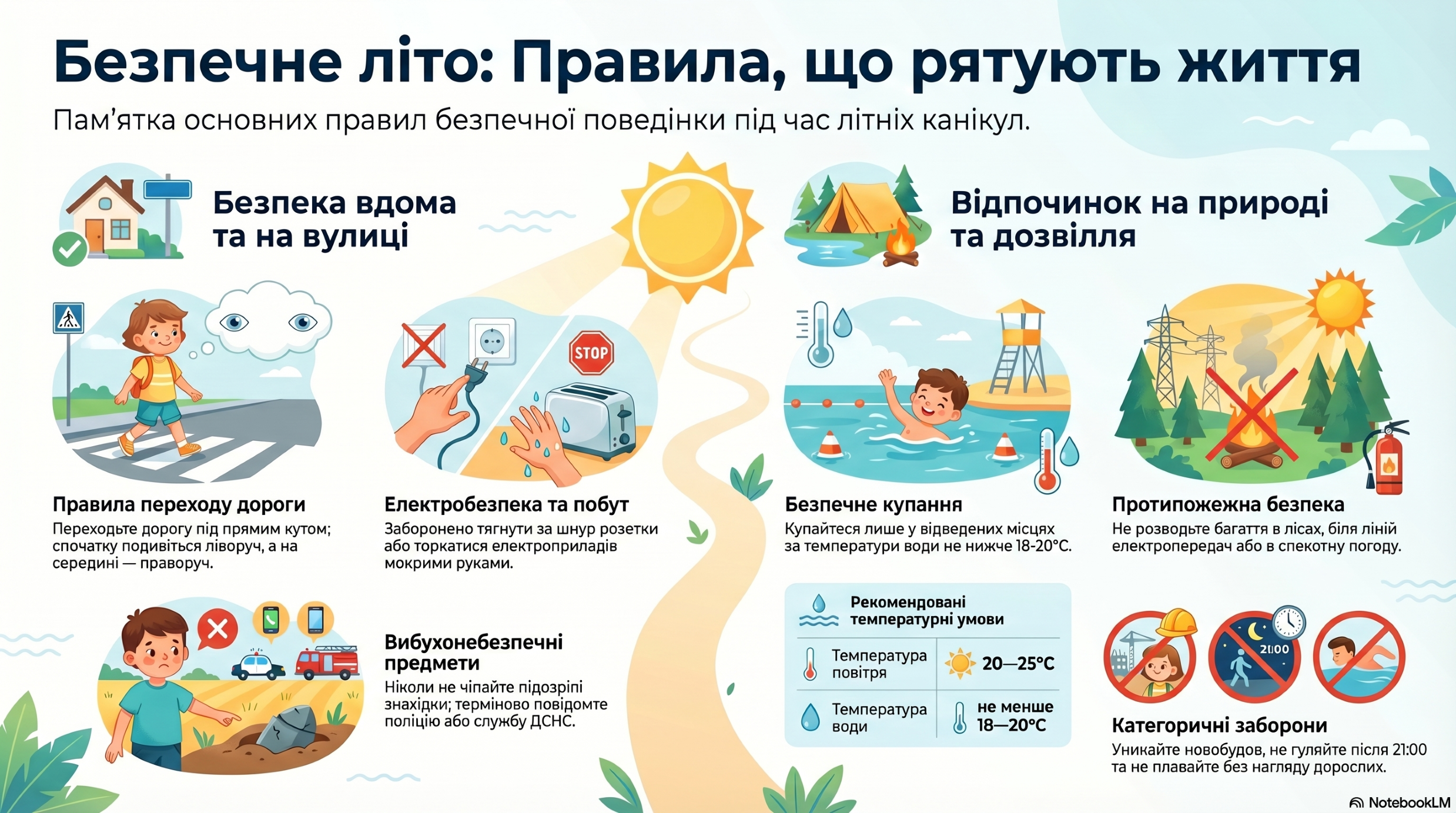 • заборонено перебувати біля водойм без супроводу дорослих;