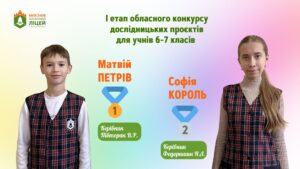 Петрів Матвій і Король Софія стали переможцями конкурсу дослідницьких проєктів для учнів 6-7 класів