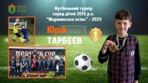 Вітаємо учня 5-Б класу Юрія Тарбєєва, гравця футбольної команди “Ревера 1908” (м. Івано-Франківськ), із перемогою (1 місце, золота медаль) у футбольному турнірі серед дітей 2015 р.н. “Моршинська осінь” – 2025, який проходив із 07.11.2025 по 09.11.2025 у Моршині.