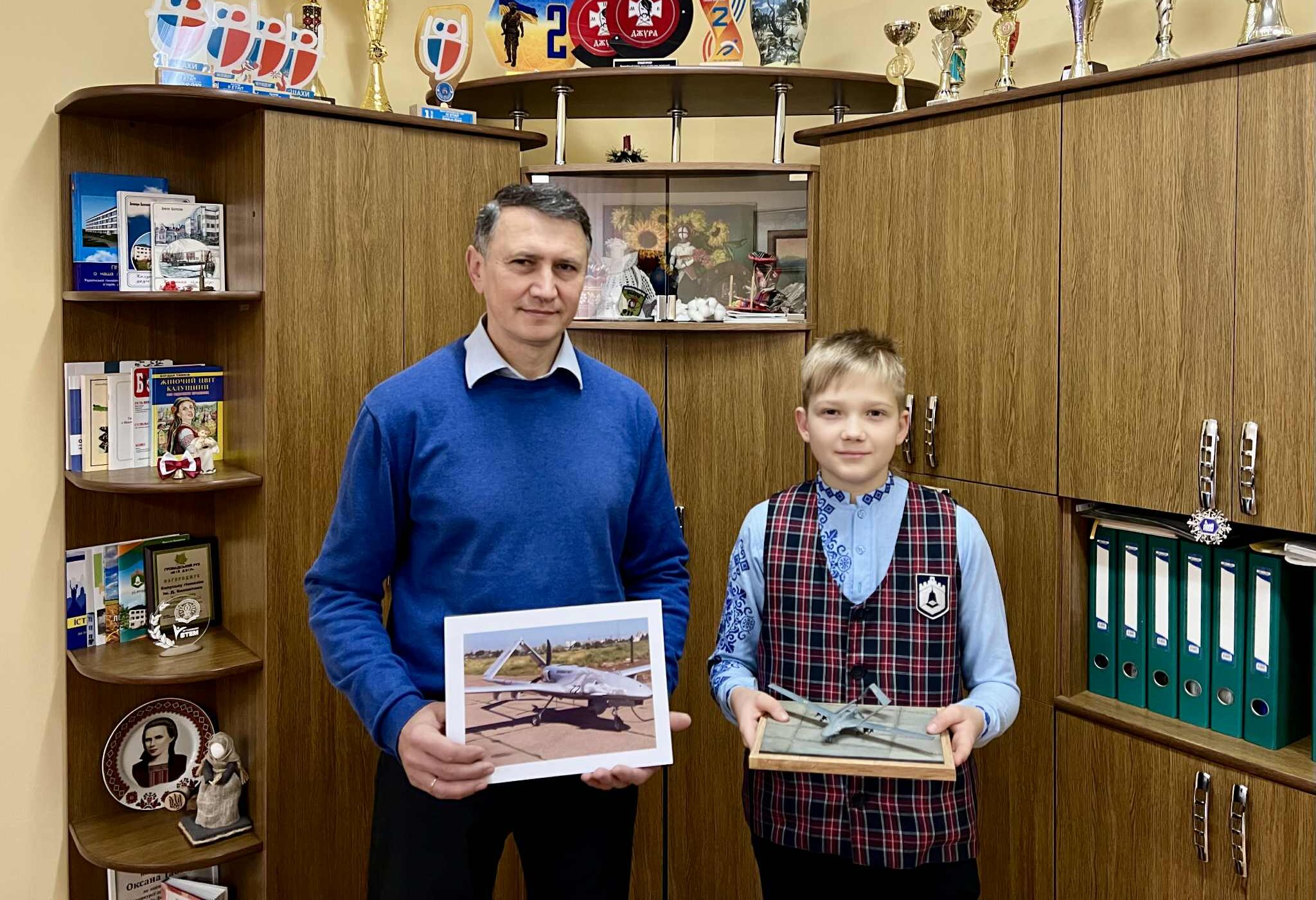 Робота ліцеїста “Модель ударного БПЛА “Bayraktar TB2″ Військово-Морських Сил Збройних Сил України” виставлялася в номінації “Історична реконструкція військової техніки та озброєння”.