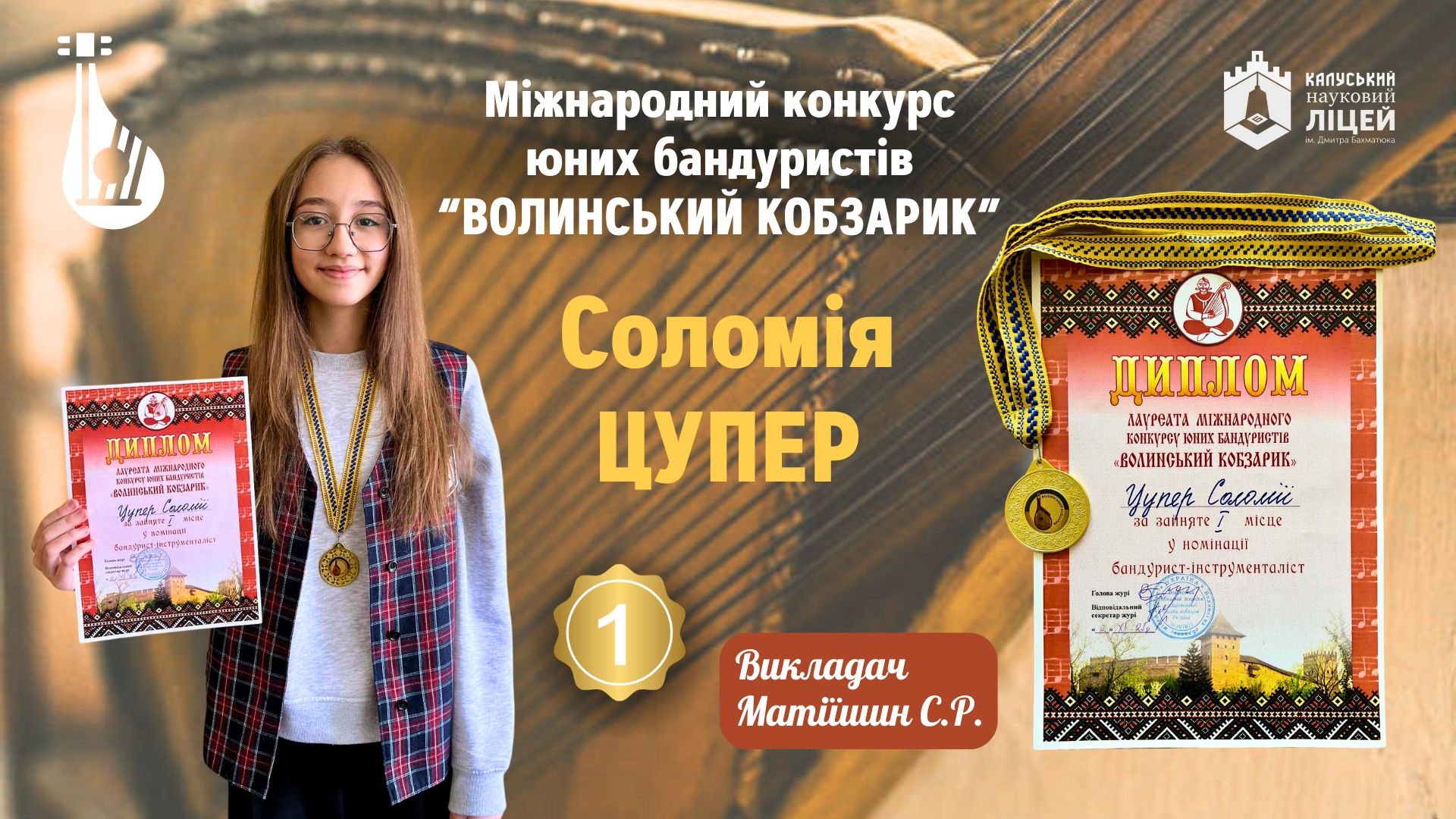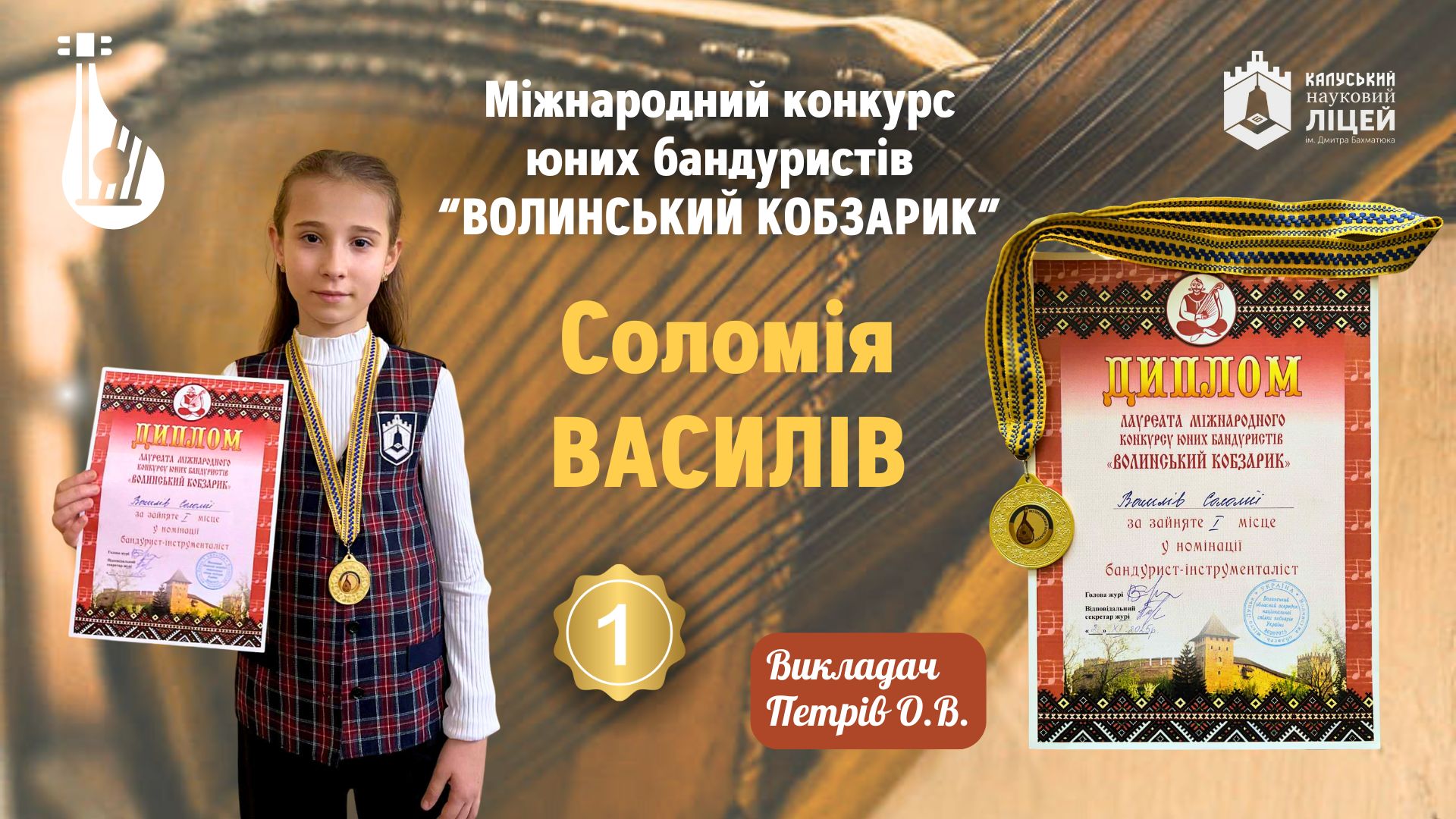 Вітаємо ученицю 5-А класу Василів Соломію та ученицю 8-Б класу Цупер Соломію з перемогою в Міжнародному конкурсі юних бандуристів «Волинський кобзарик»!