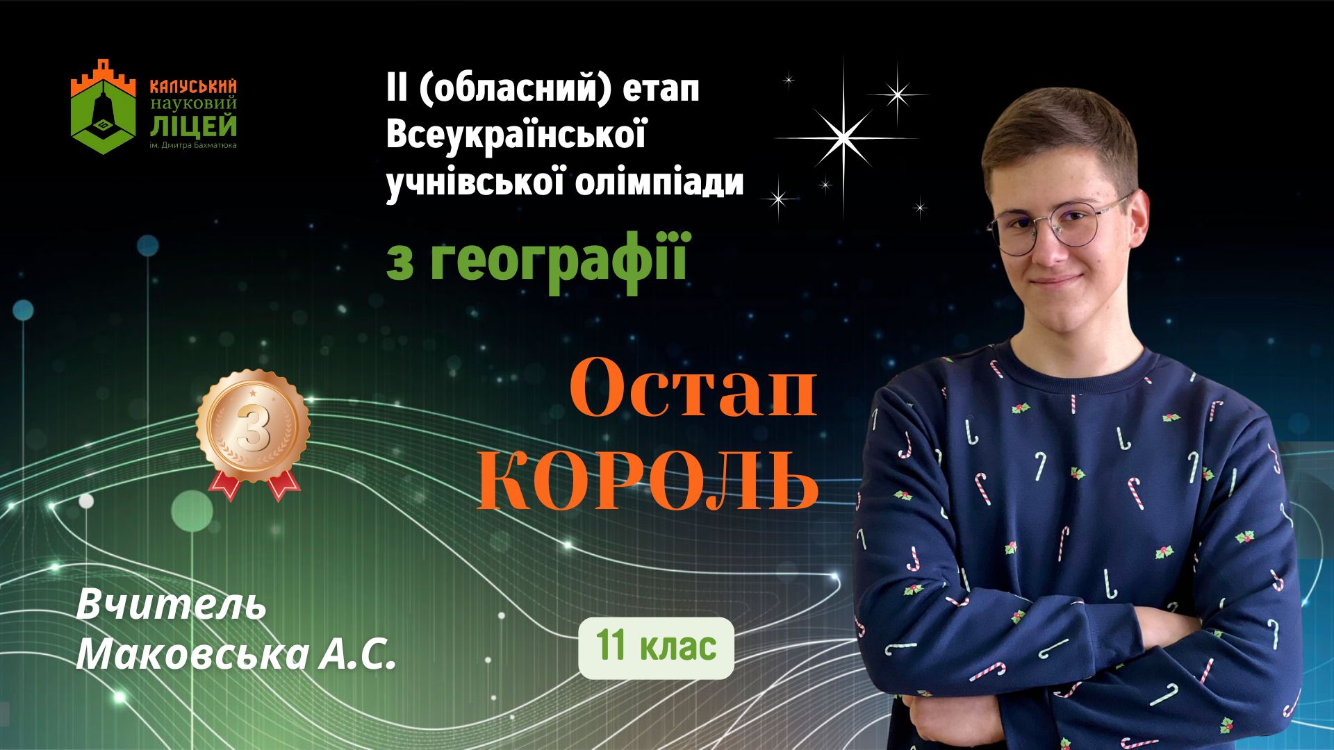 | 22 | Король Остап | 11 | Географія | Маковська А.С. | ІІІ |