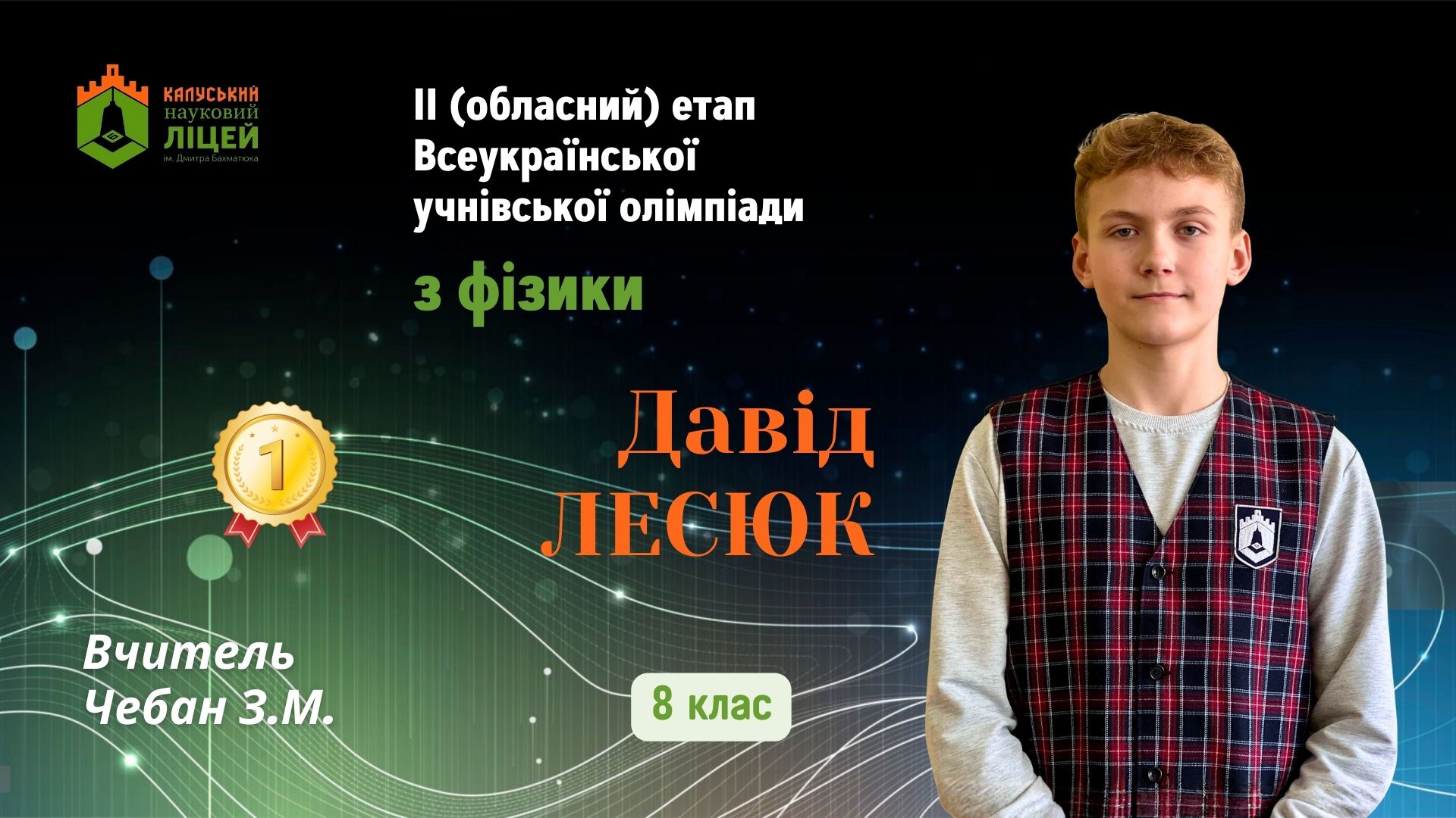 | 2 | Лесюк Давід | 8 | Фізика | Чебан З.М. | І |