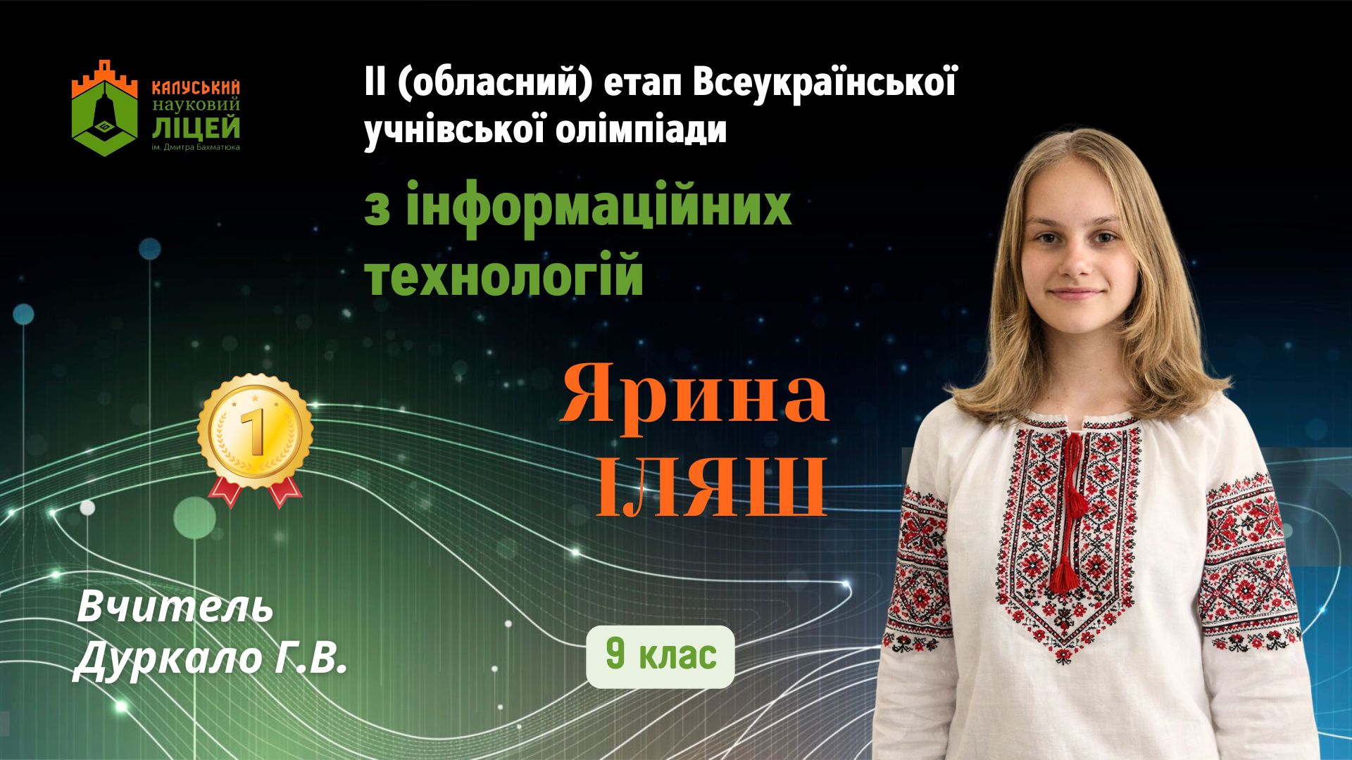 | 3 | Іляш Ярина | 9 | Інформаційні технології | Дуркало Г.В. | І |
