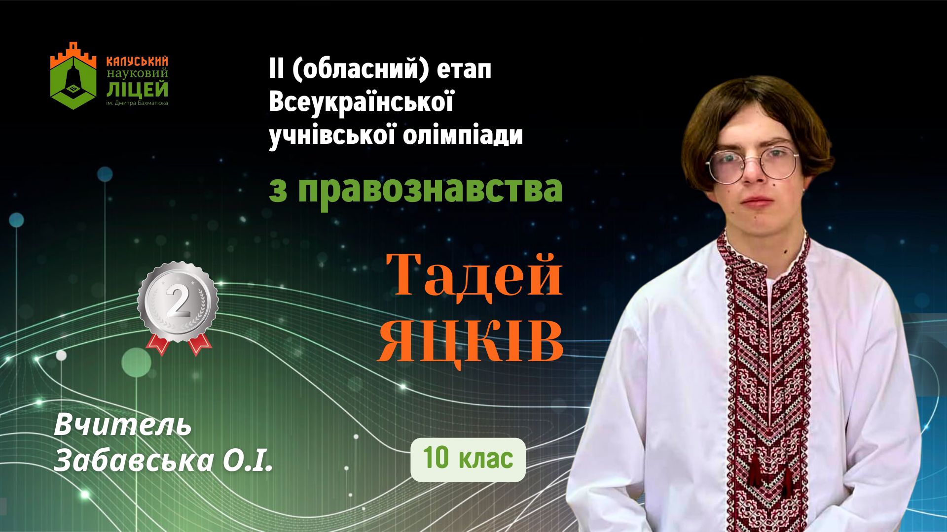 | 7 | Яцків Тадей | 10 | Правознавство | Забавська О.І. | ІІ |