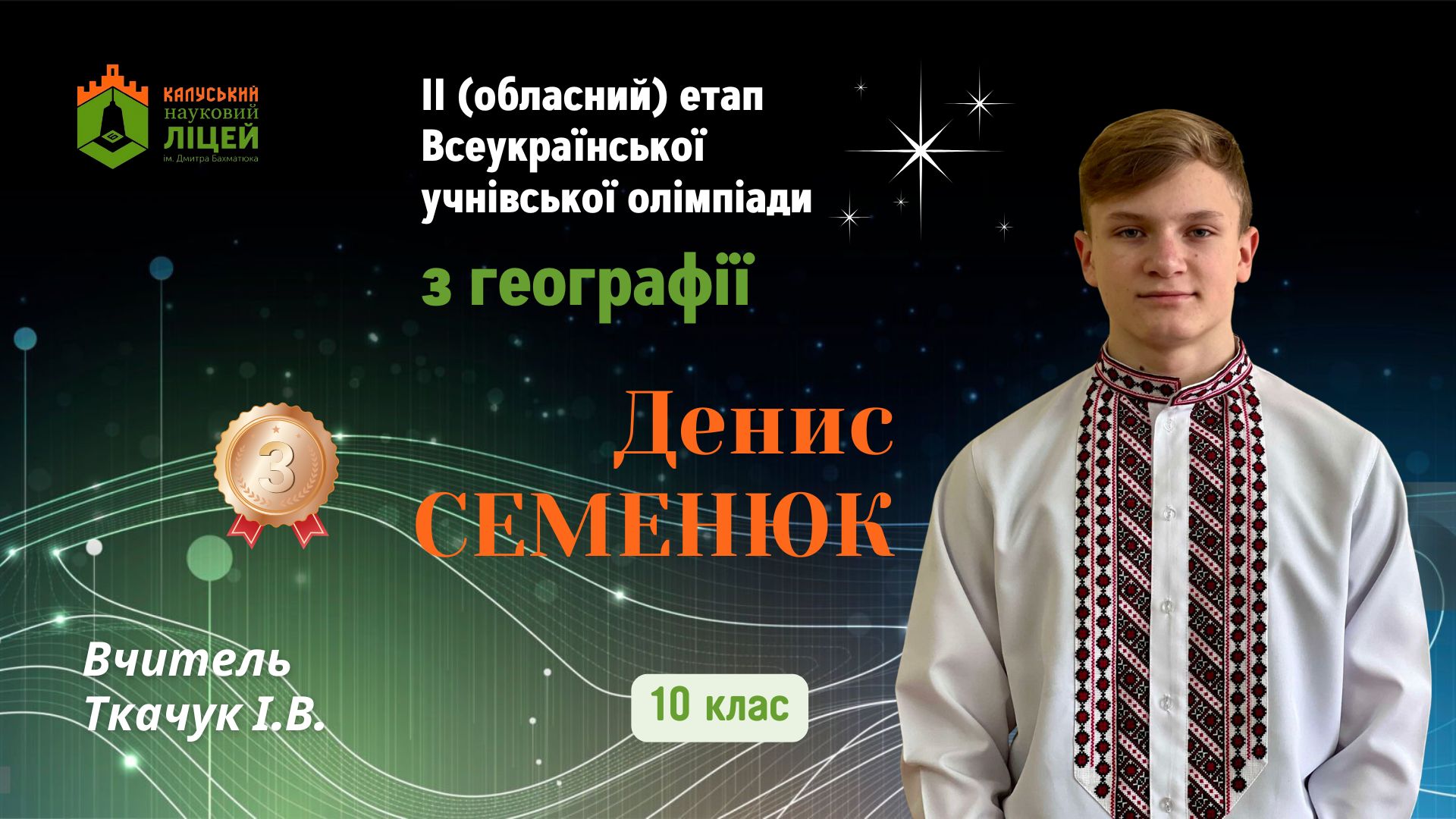 | 21 | Семенюк Денис | 10 | Географія | Ткачук І.В. | ІІІ |