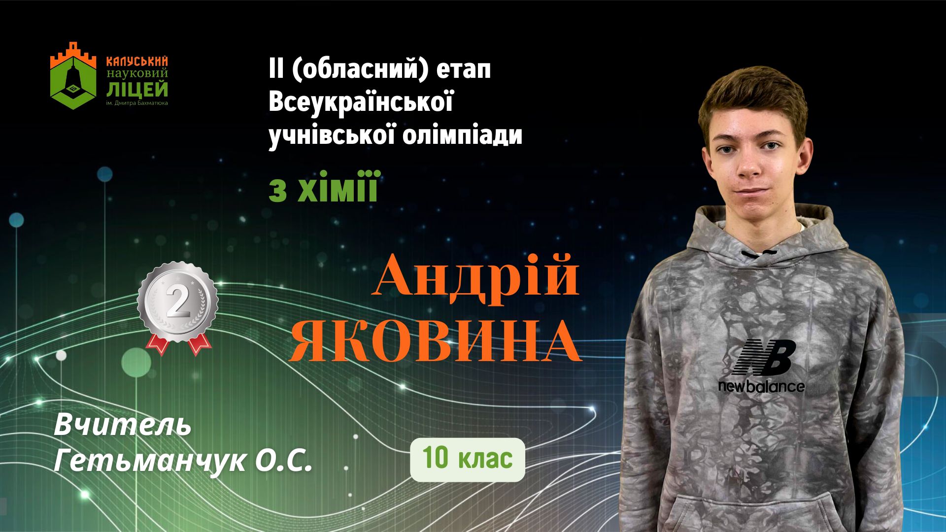 | 9 | Яковина Андрій | 10 | Хімія | Гетьманчук Л.С. | ІІ |