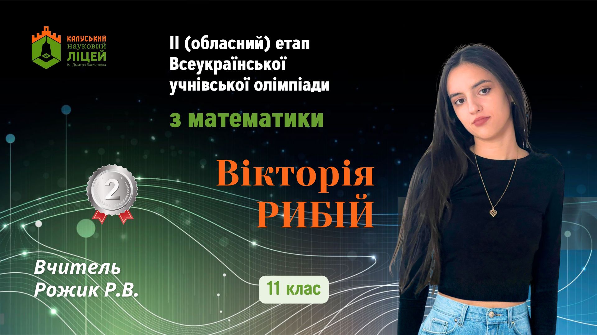 | 8 | Рибій Вікторія | 11 | Математика | Рожик Р.В. | ІІ |