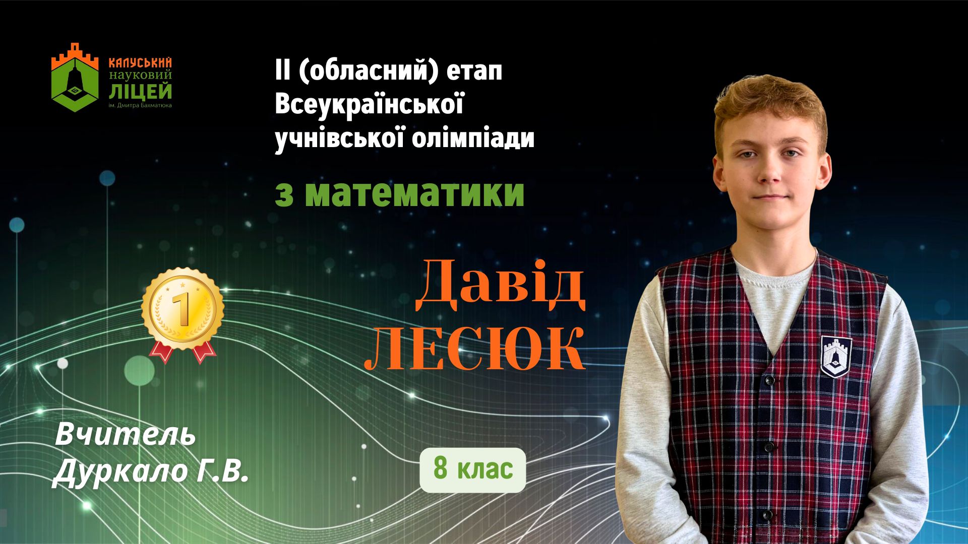 | 6 | Лесюк Давід | 8 | Математика | Дуркало Г.В. | І |