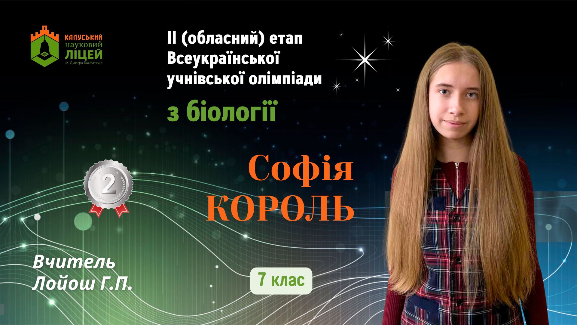| 15 | Король Софія | 7 | Біологія | Лойош Г.П. | ІІ |