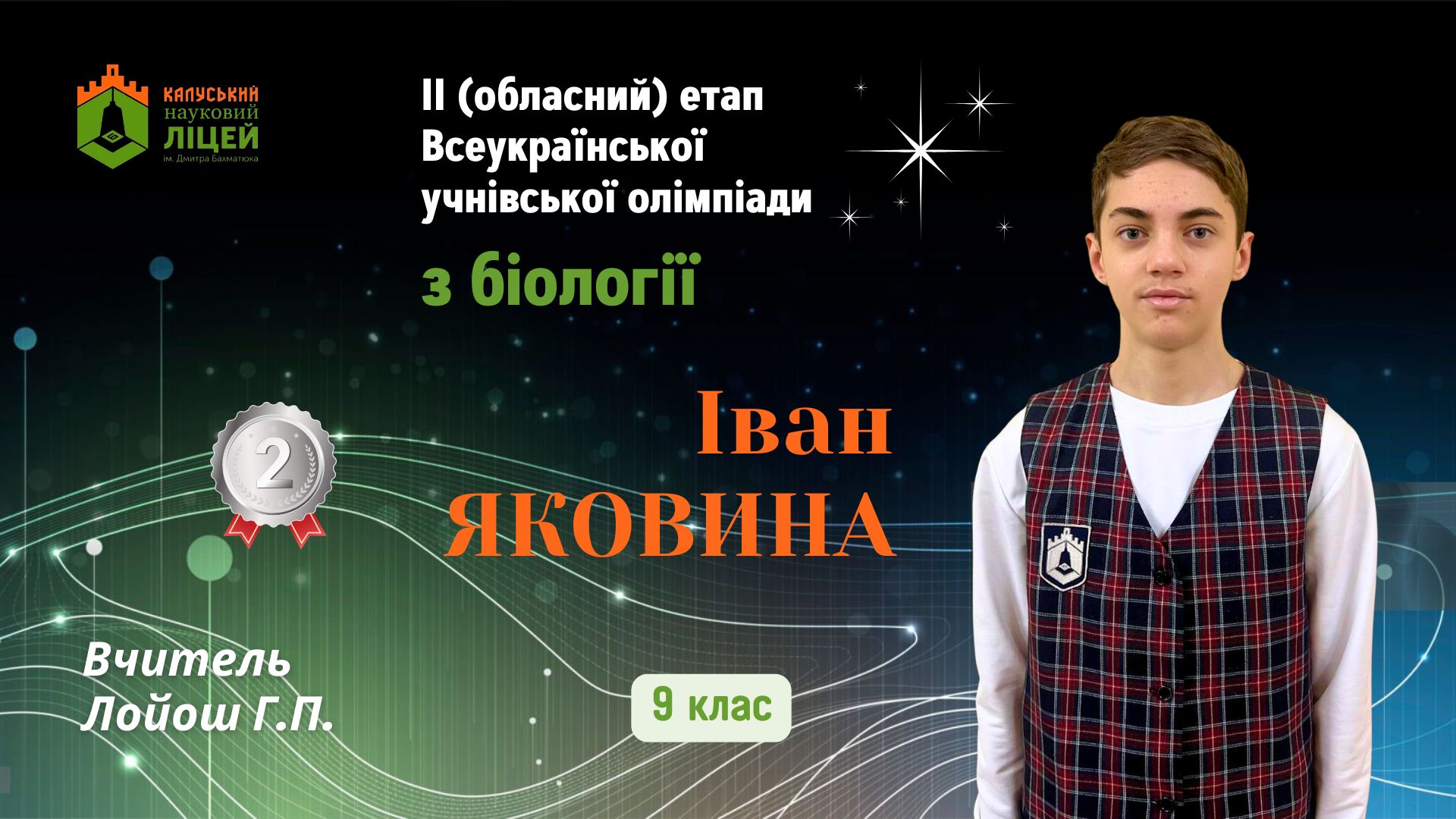 | 14 | Яковина Іван | 9 | Біологія | Лойош Г.П. | ІІ |