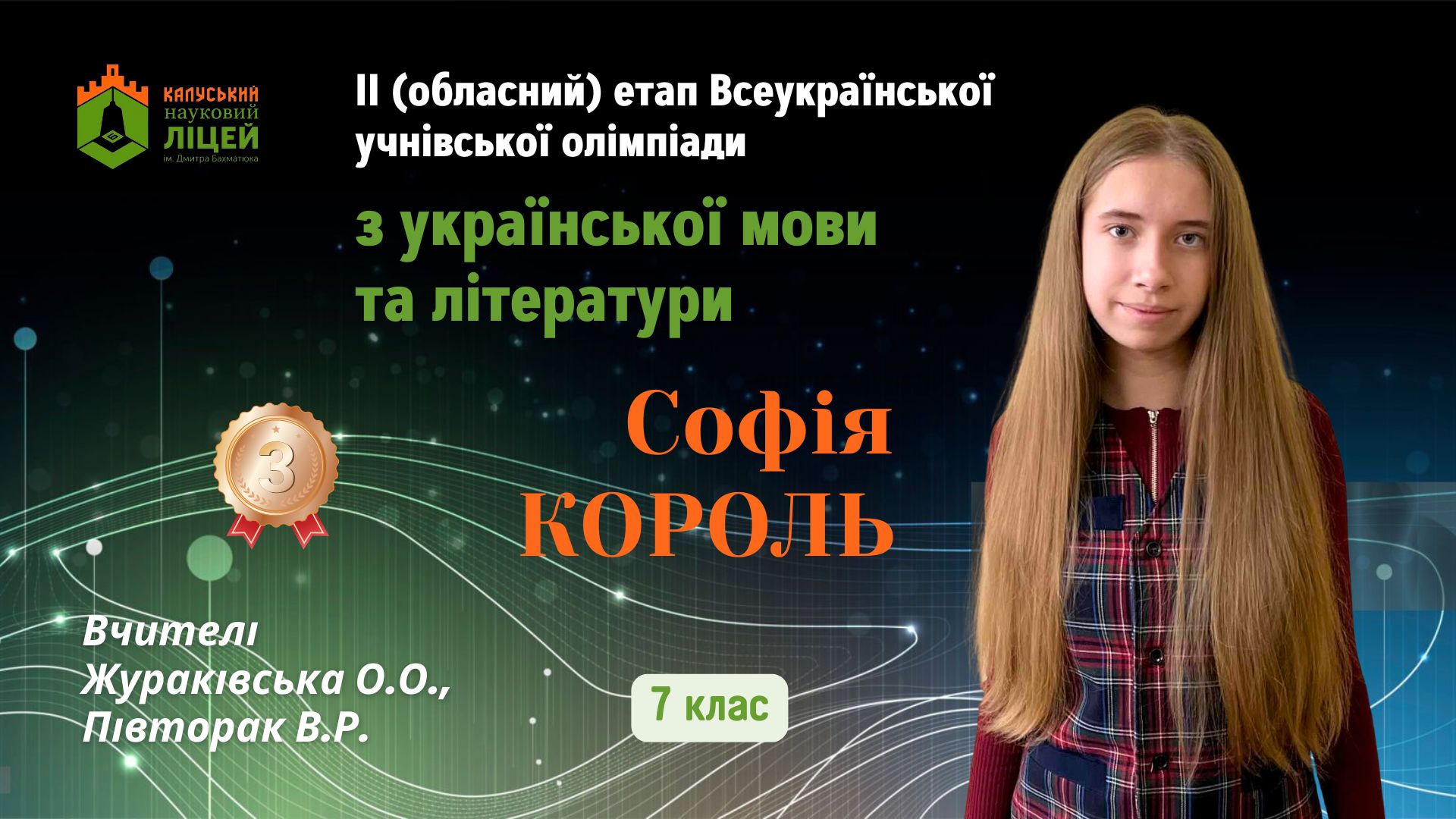 | 20 | Король Софія | 7 | Українська мова і література | Жураківська О.О.,
