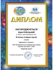 Юрій Ревуцький переміг на XXІV Всеукраїнській конференції-конкурсі науково-дослідних робіт «Зоряний шлях»