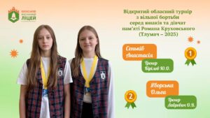 Вітаємо з перемогою у Відкритому обласному турнірі з вільної бортьби серед юнаків та дівчат пам’яті Романа Круховського, який 27.09.2025 проходив у Тлумачі, ученицю 8 класу Сеньків Анастасію (1 місце, золота медаль) та ученицю 8 класу Яворську Ольгу (2 місце, срібна медаль)!