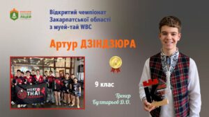 Вітаємо учня 9-А класу Дзіндзюру Артура з перемогою (І місце, золота медаль) у Відкритому чемпіонаті Закарпатської області з муейтай WBC, який відбувся 13-15.03.2026 у Великому Бичкові.