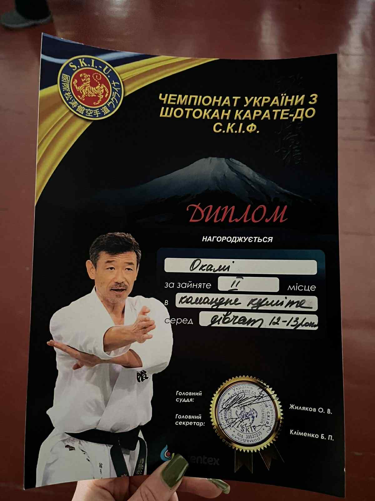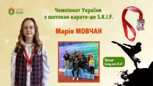 Вітаємо Марію Мовчан, ученицю 7-А класу, з перемогою (2 місце, срібна медаль) у Всеукраїнському чемпіонаті України з шотокан карате-до S.K.I.F., що проходив у Києві і зібрав 770 учасників (30 команд) із більшості областей України.